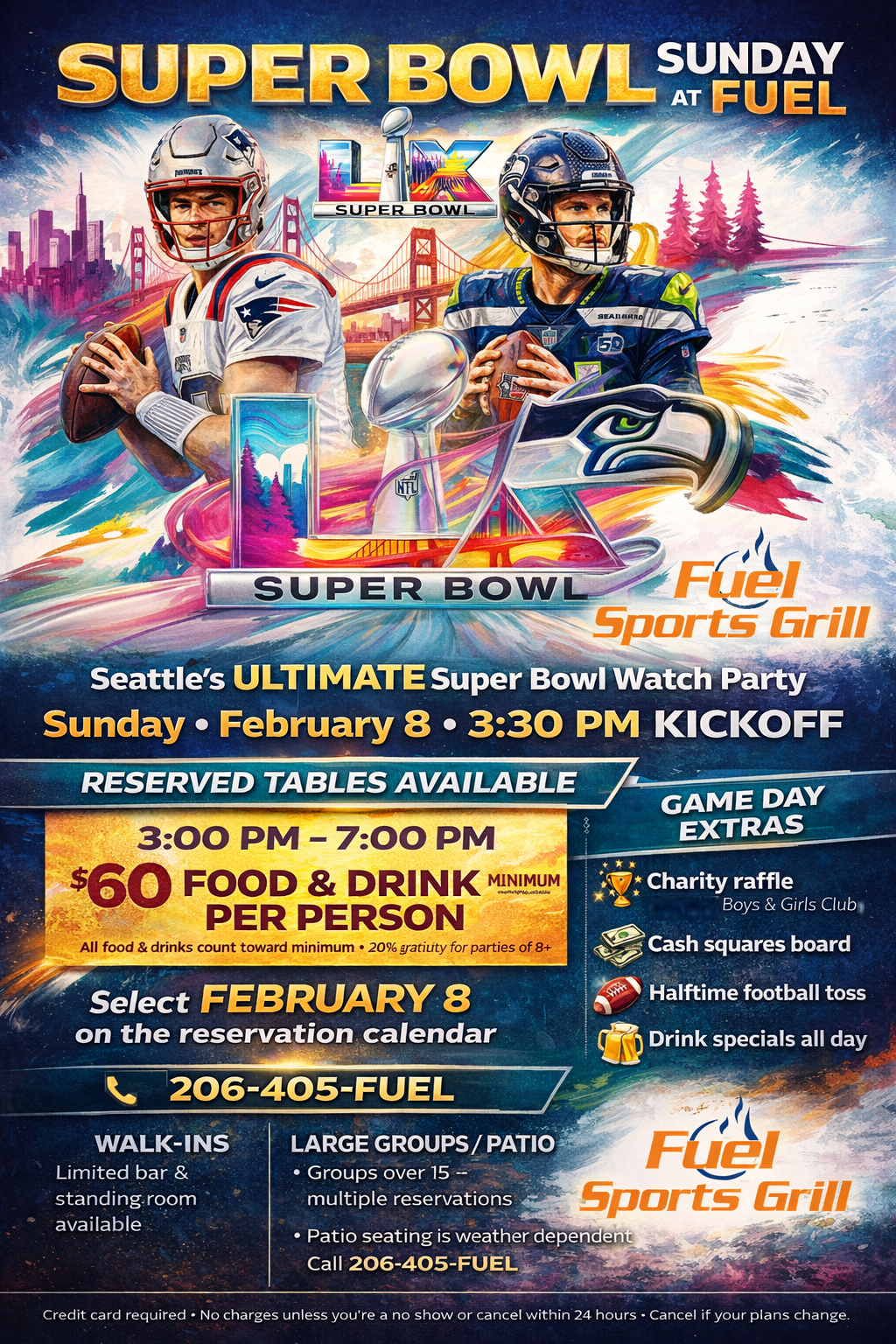 #SuperBowlLX #Seahawks #Patriots #FuelSportsGrill #GameDay