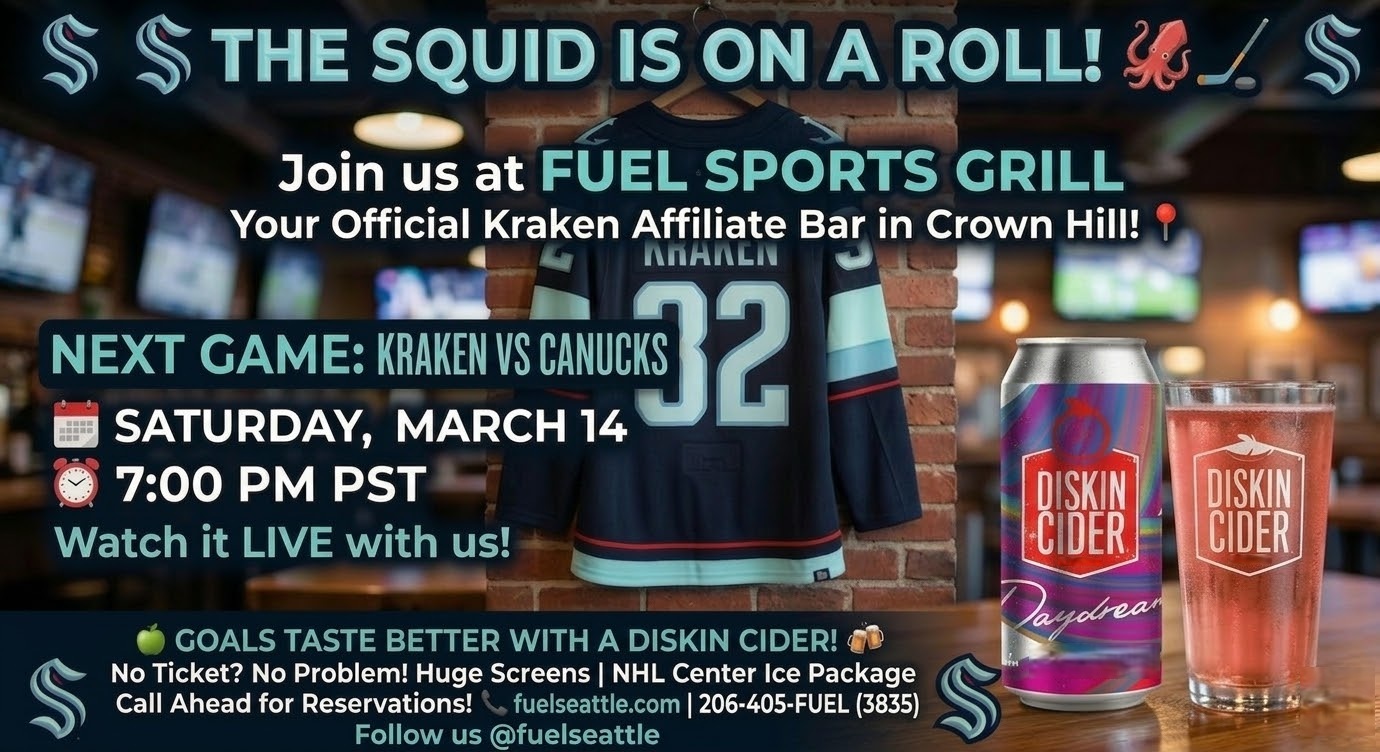 Whether you’re looking for the best sports bar in Ballard or Crown Hill, a Seattle sports bar with parking, or a welcoming place to watch the Seahawks, Mariners, Sounders, Kraken, and more, Fuel Sports Grill is your go-to destination.