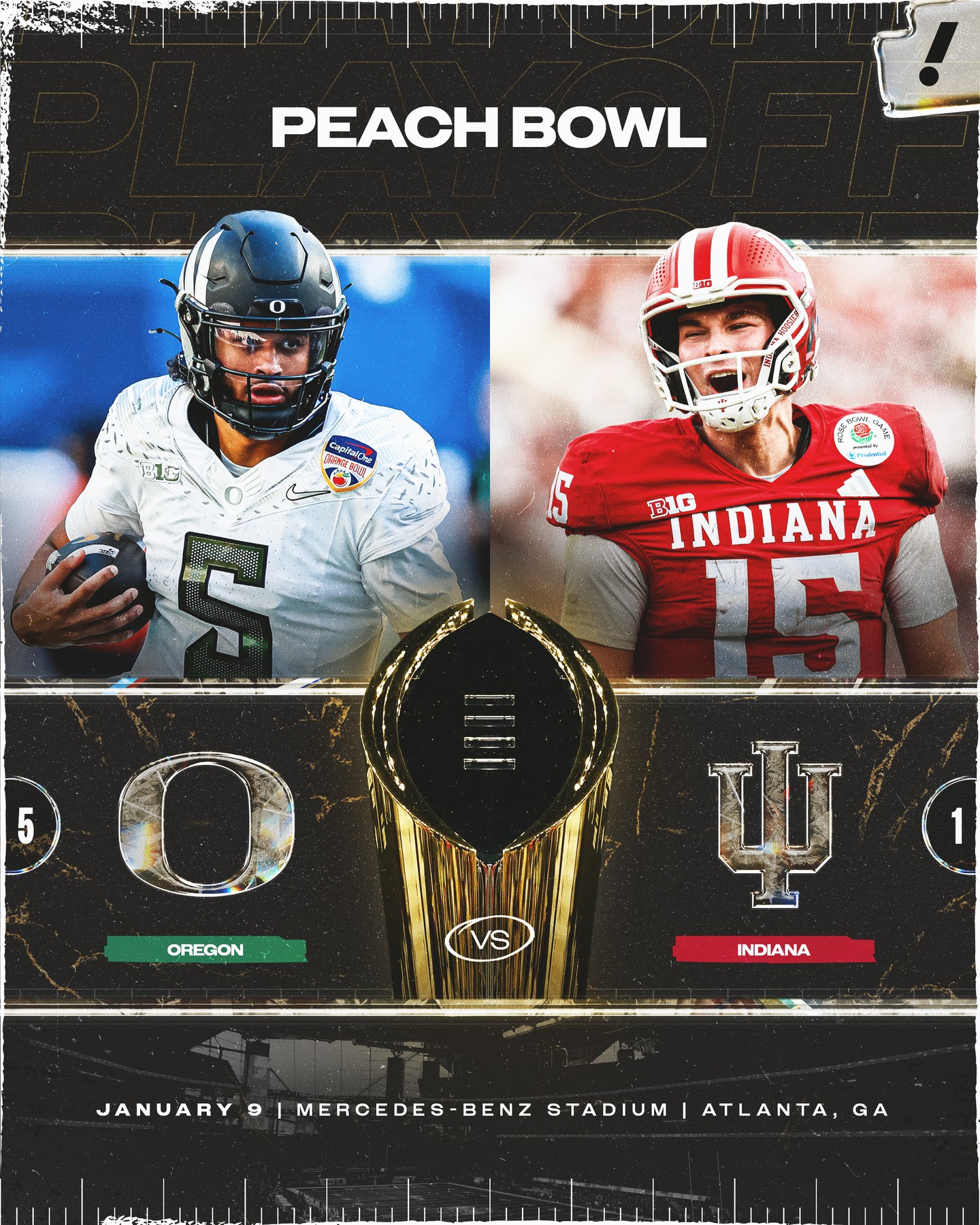 Come Friday, January 9, grab your fellow fans and head over to Fuel Sports Grill to watch the No. 1 Indiana Hoosiers take on the No. 5 Oregon Ducks in the Peach Bowl! 🍑🏈